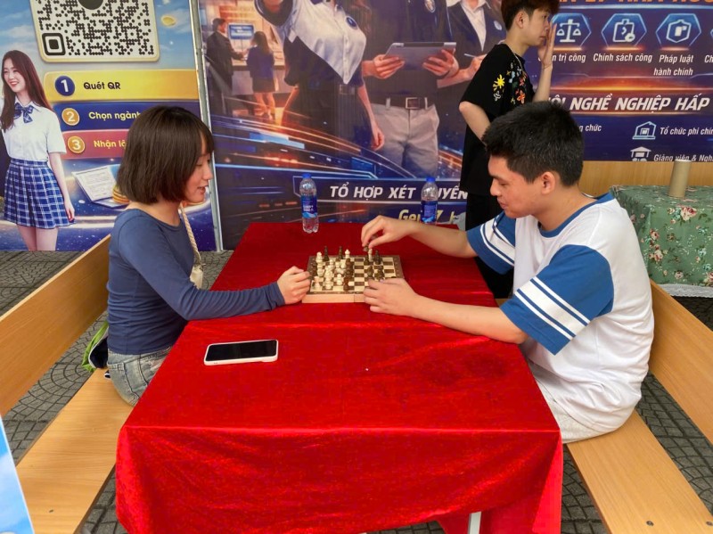 Không khí tại khu trải nghiệm của khoa luôn sôi nổi với các hoạt động giao lưu, hỏi đáp và mini game kiến thức. Nhiều học sinh bày tỏ sự hứng thú khi lần đầu tiên được tiếp cận với ngành học mang tính “quản trị xã hội” đầy mới mẻ nhưng cũng rất gần gũi với đời sống.